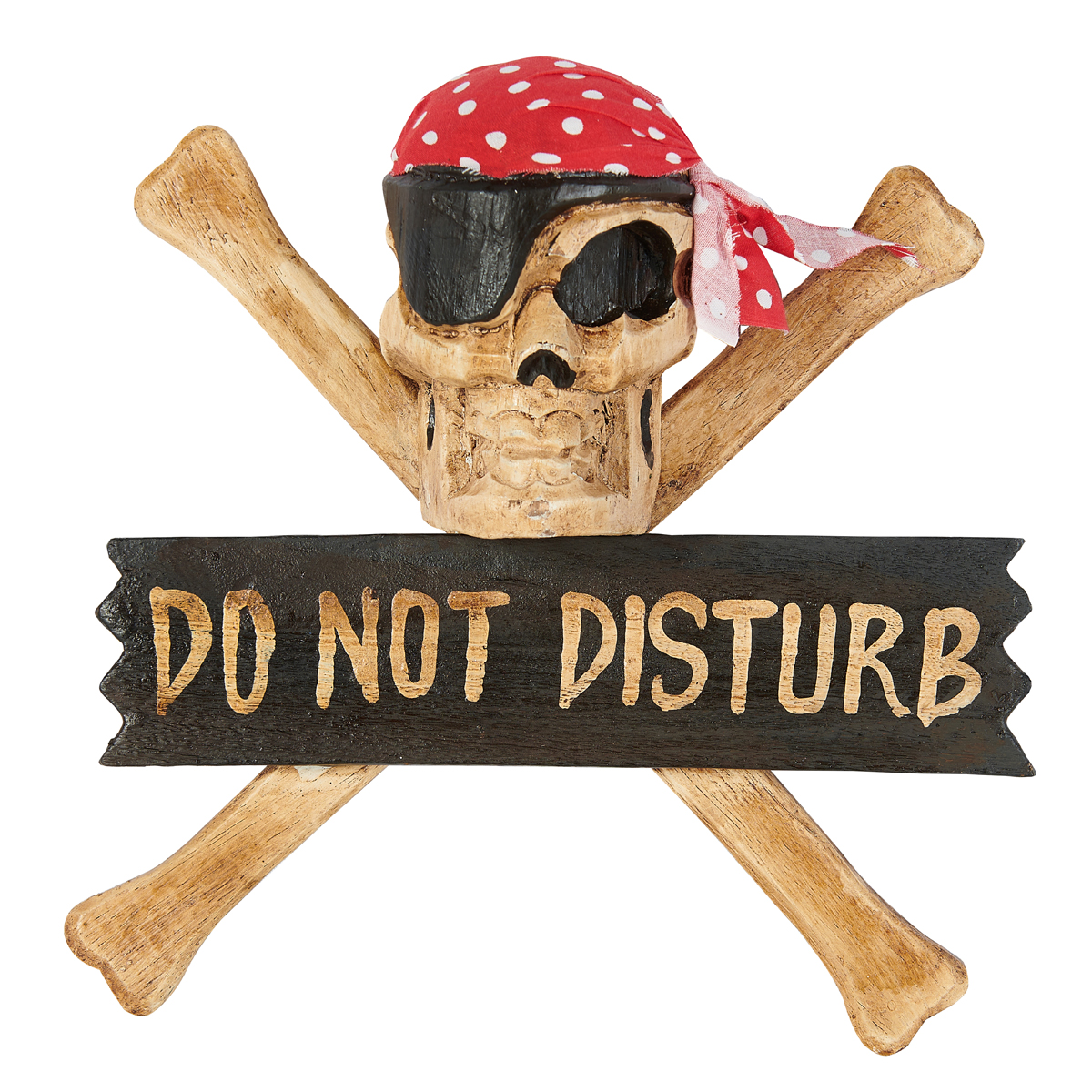 Hand carved and hand-painted ‘ Do nit disturb’ skull & crossbones wooden sign with material bandana.