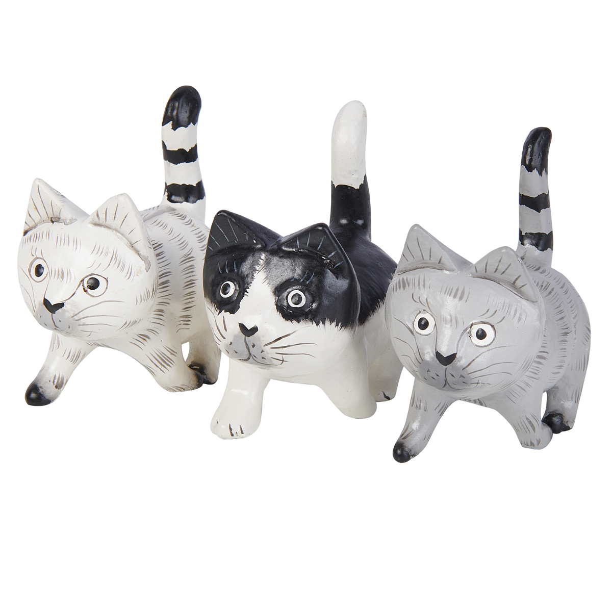 Painted Cat Wood Carvings