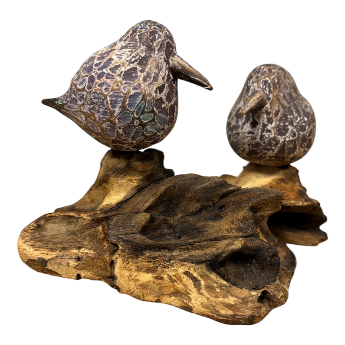 Double abstract birds on driftwood – small