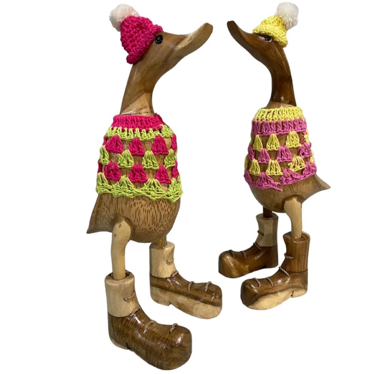 Bamboo root duck with crochet clothing
