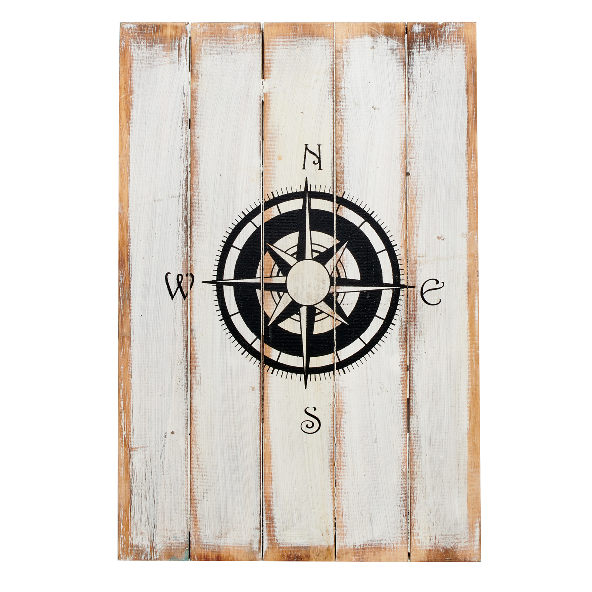 Compass wooden sign. Dimensions; W30 x H45cm.