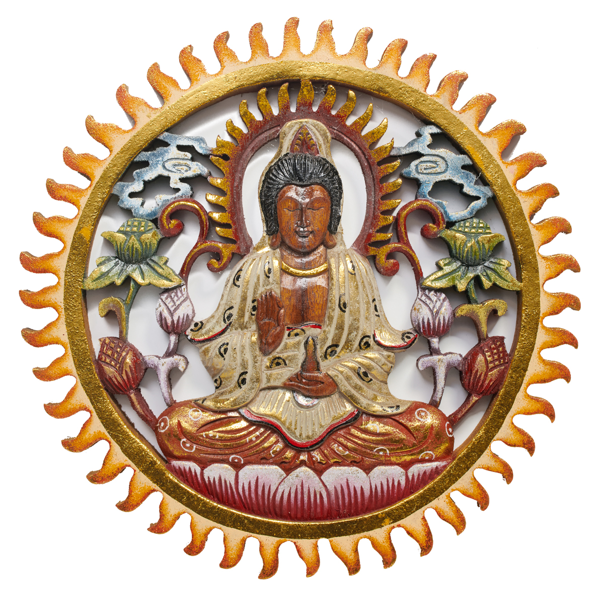 Hand-carved and hand-painted albesia wood painted sun.