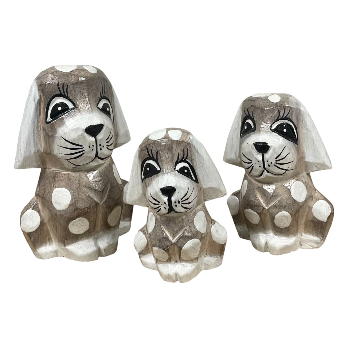 Hand-carved and hand-painted albesia wood set of 3 dogs.