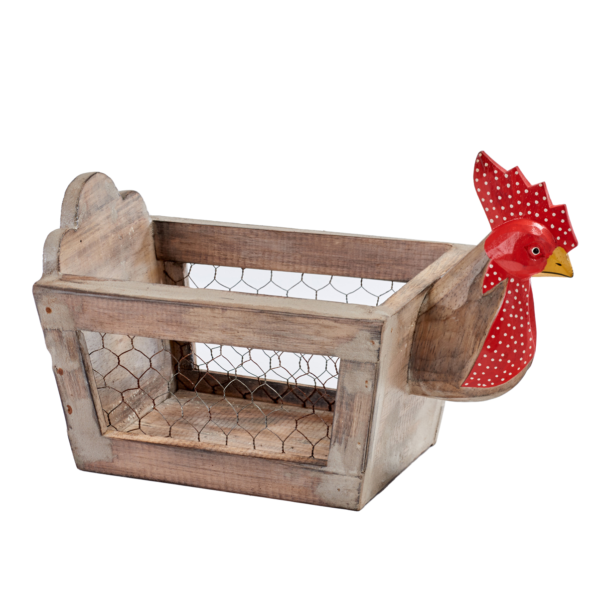 Hand-carved and hand-painted albesia wood and wire egg painted egg basket.