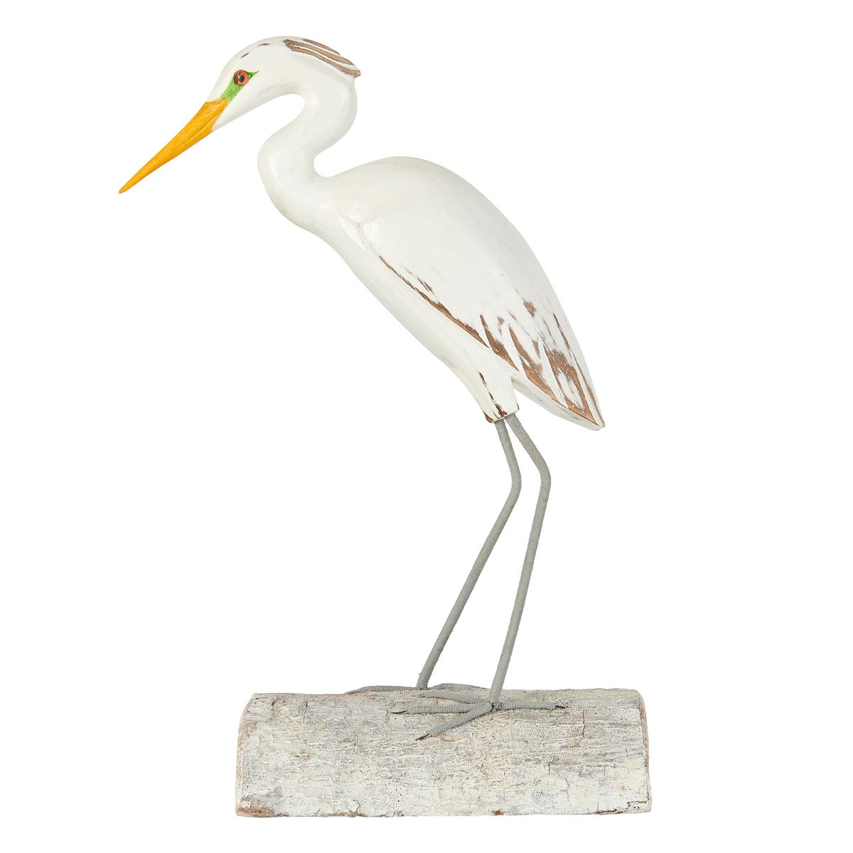 Hand-carved and hand-painted albesia wood Egret on a driftwood.