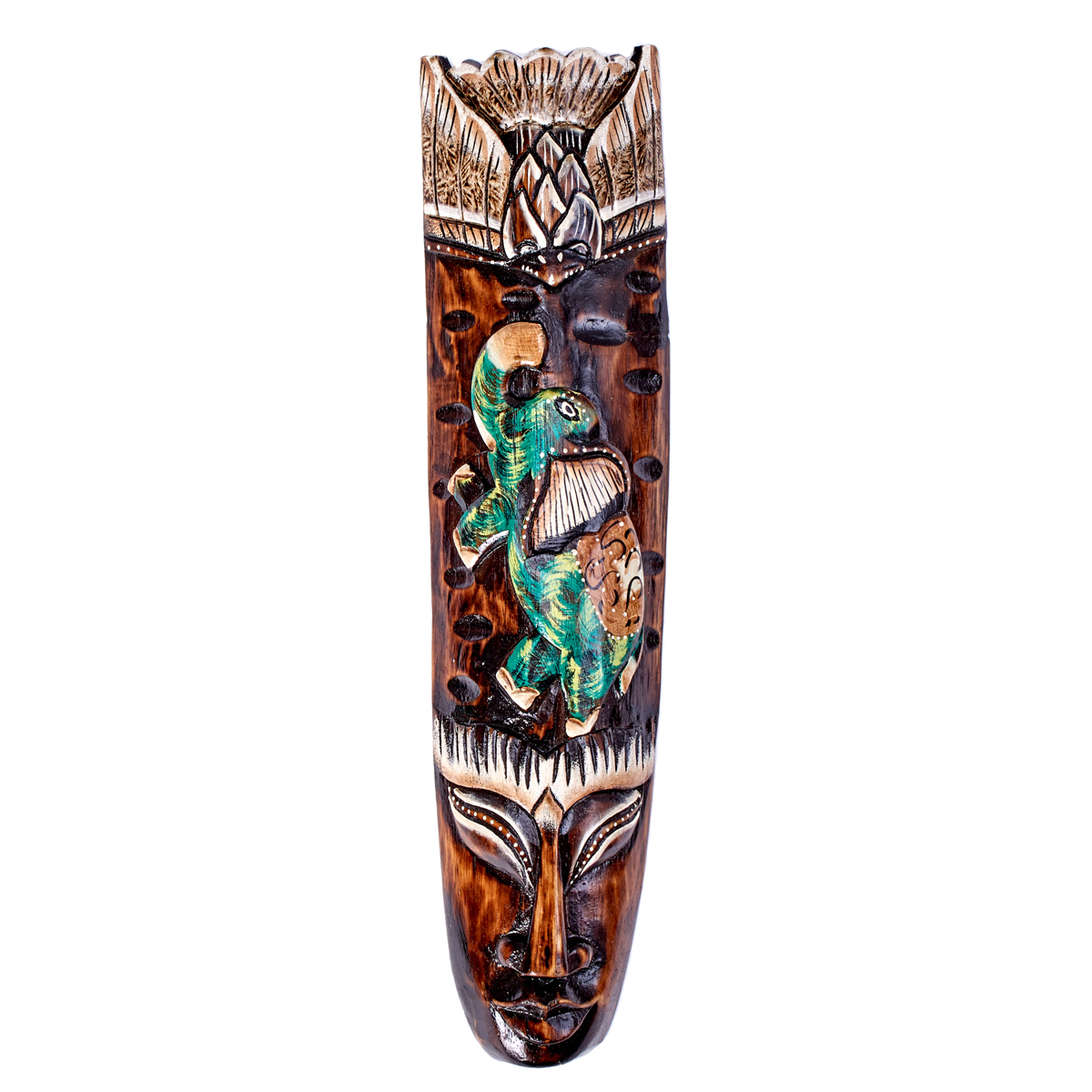 Painted wood carved mask with elephant motif, Dimensions; L50cm.
