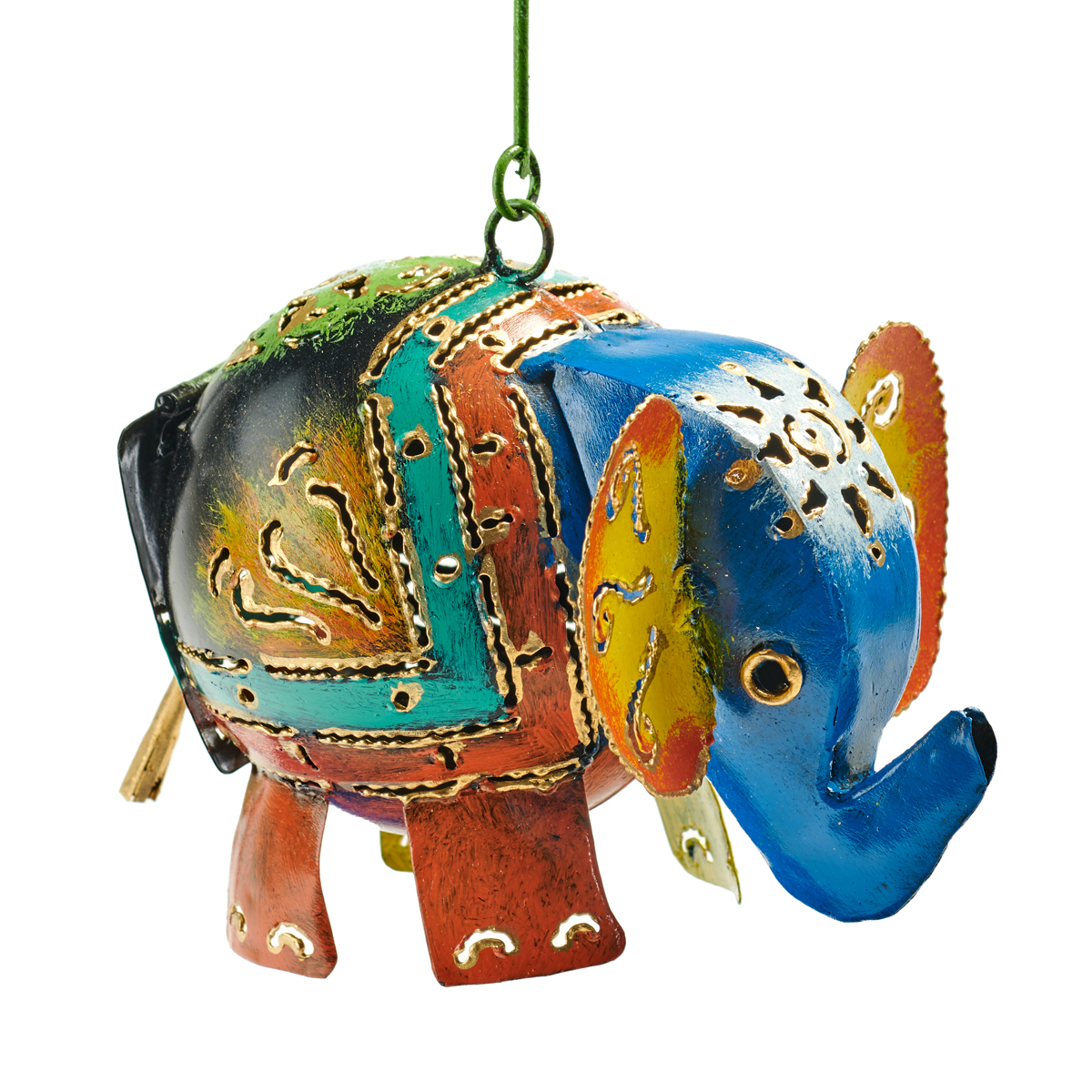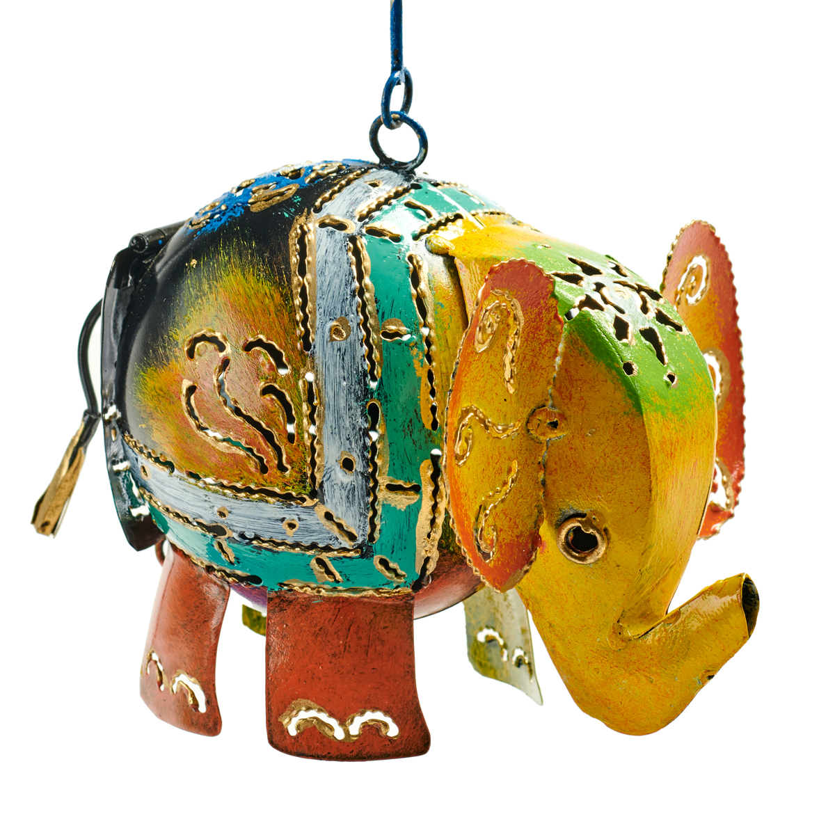 Painted iron elephant candle lamp. Dimensions; H10cm.