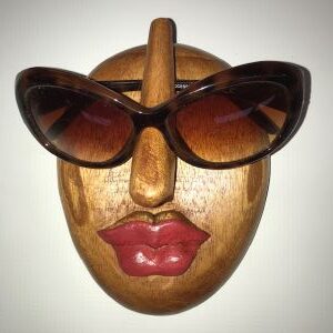 Hand-carved and hand-painted albesia wood Wall hanging face with lips glasses holder.