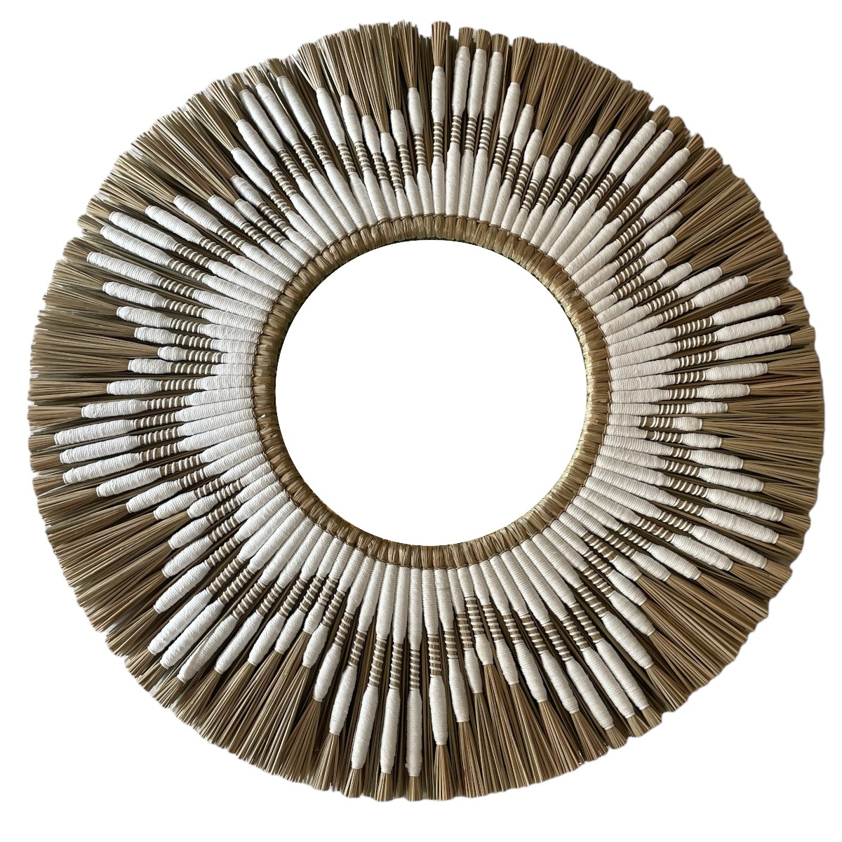 Mendong mirror with cream colour cotton decoration.