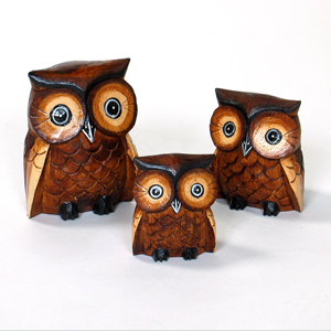 Hand-carved and hand-painted albesia wood set of 3 owls.