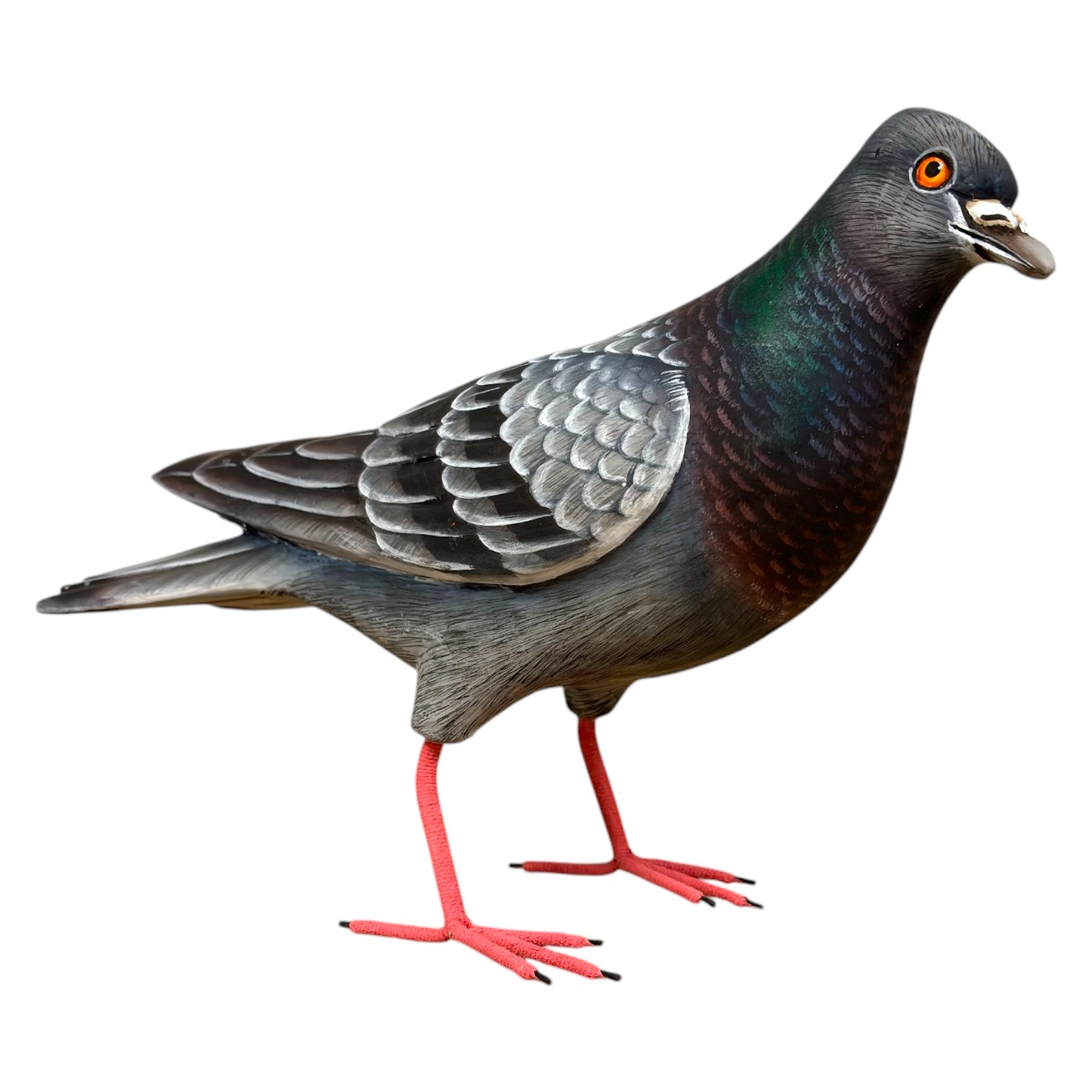 Hand-carved and hand-painted albesia wood Rock Pigeon.
