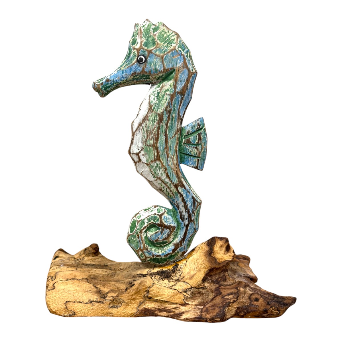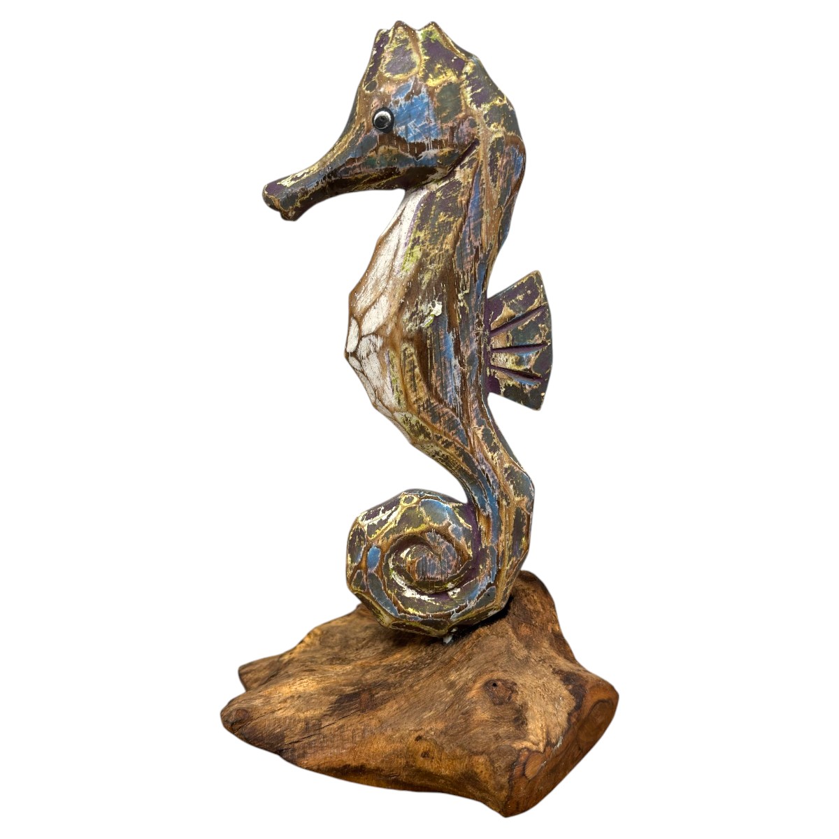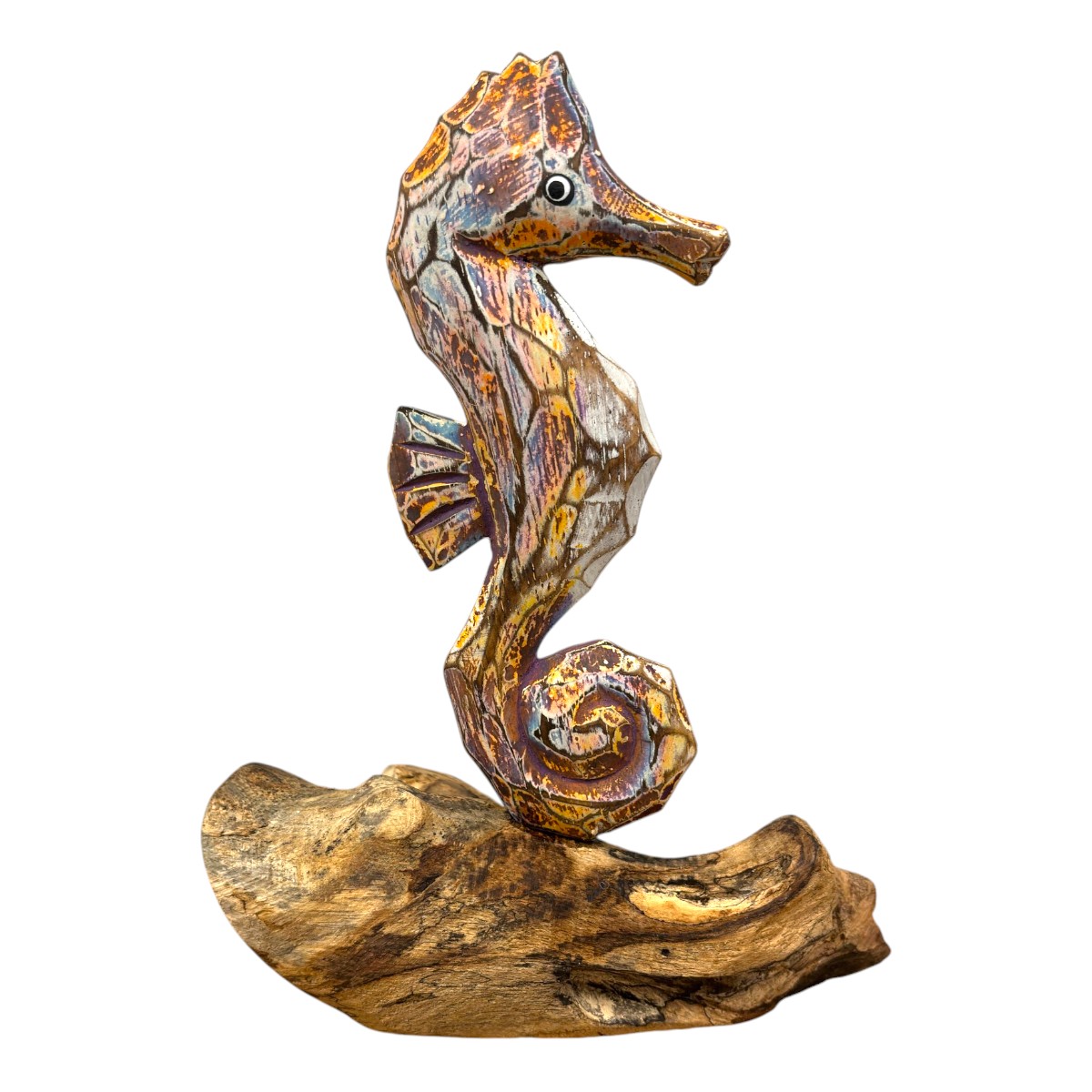 Painted seahorse on driftwood