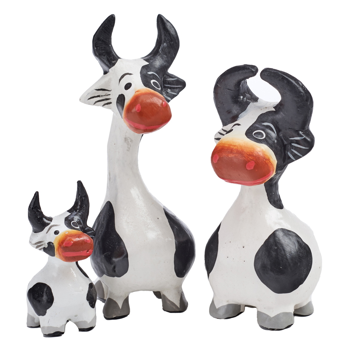 Hand-carved and hand-painted albesia wood set of 3 cow.