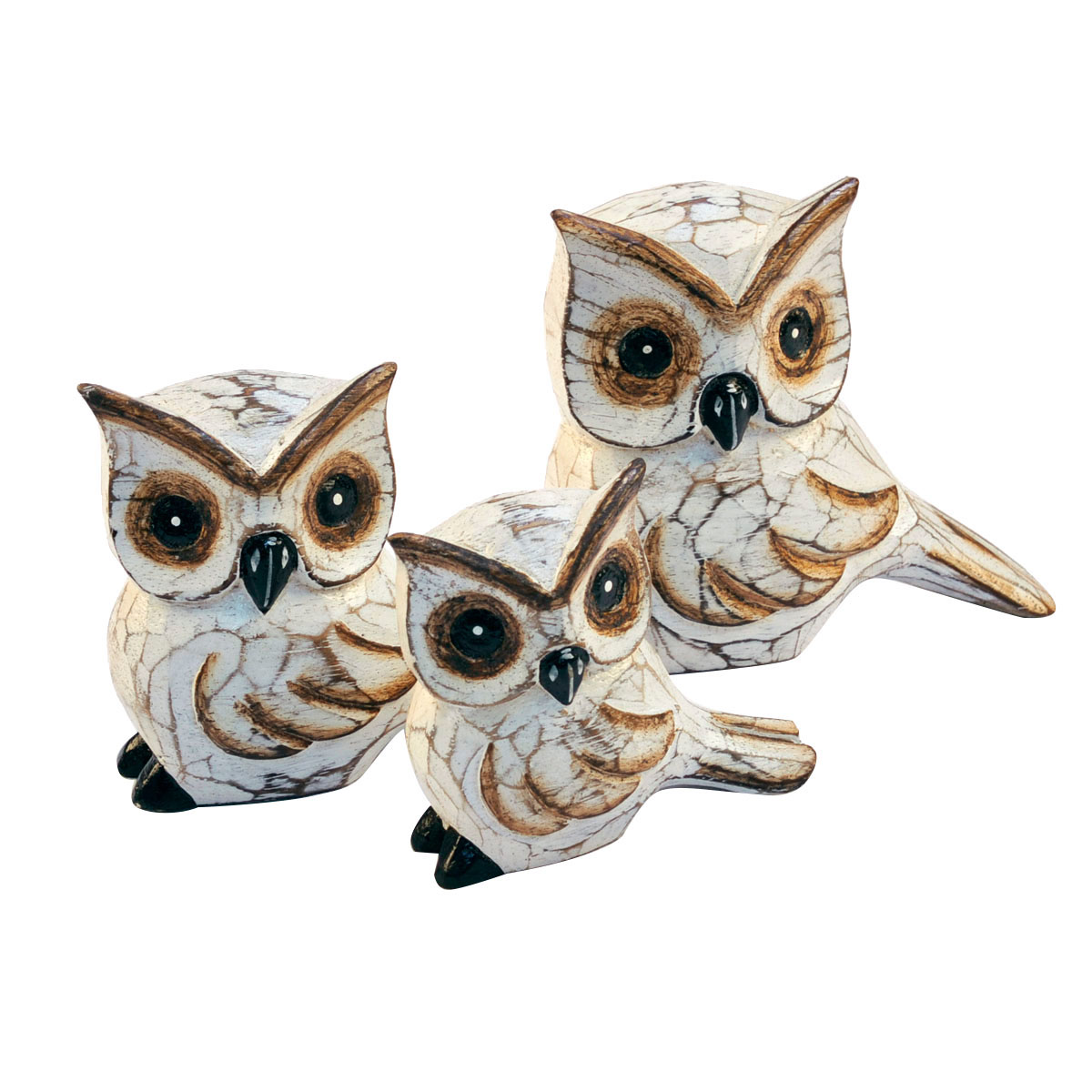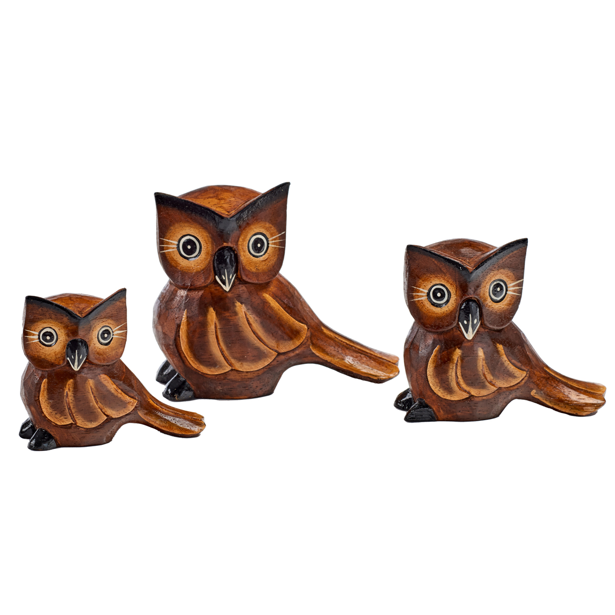 Hand-carved and hand-painted albesia wood set of 3 owls.