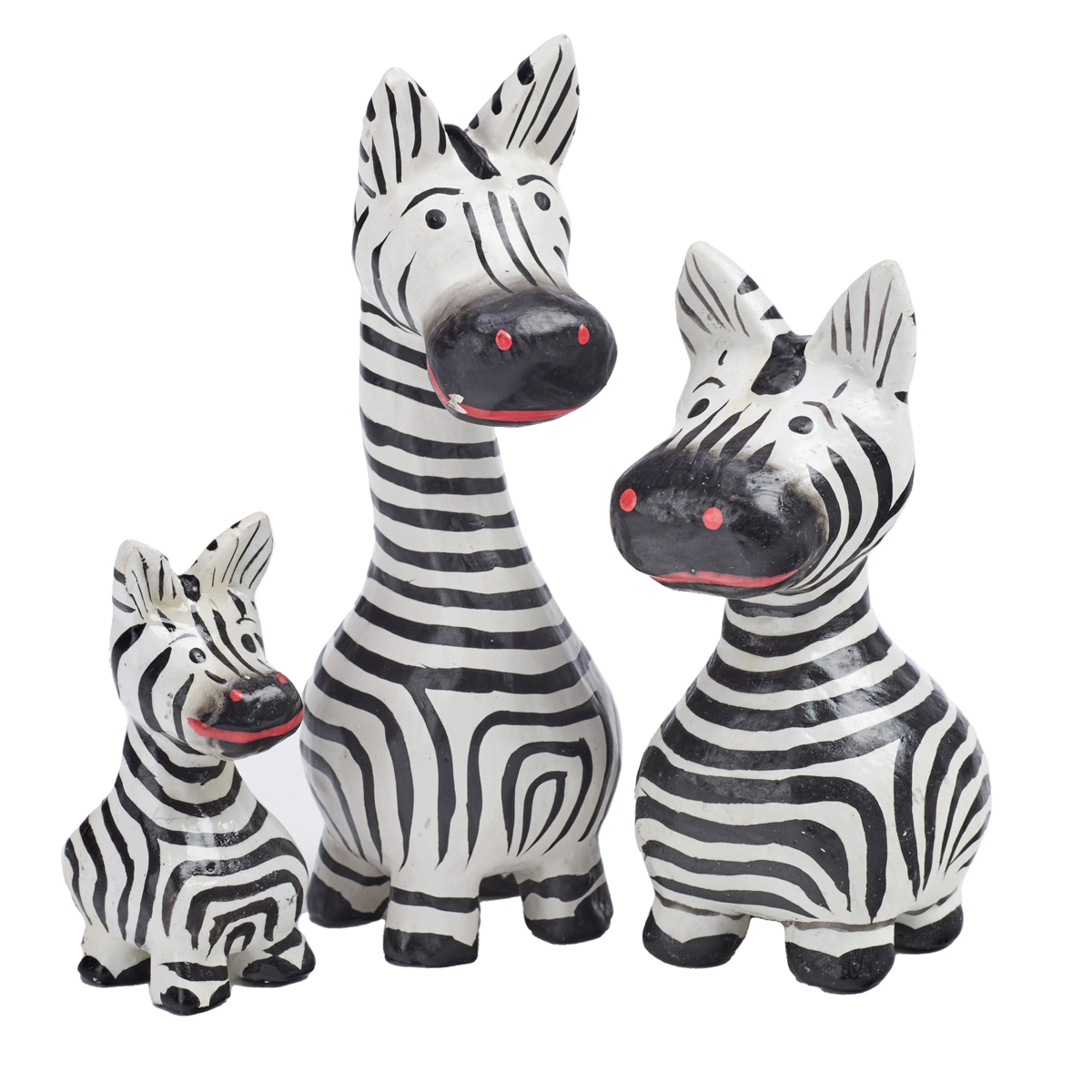 Hand-carved and hand-painted albesia wood set of 3 zebras.