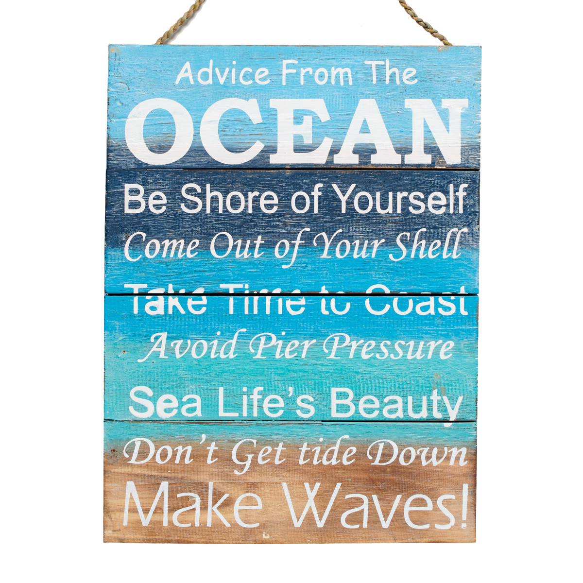 Advice from the ocean…..wooden sign. Dimensions; W30 x H40cm.