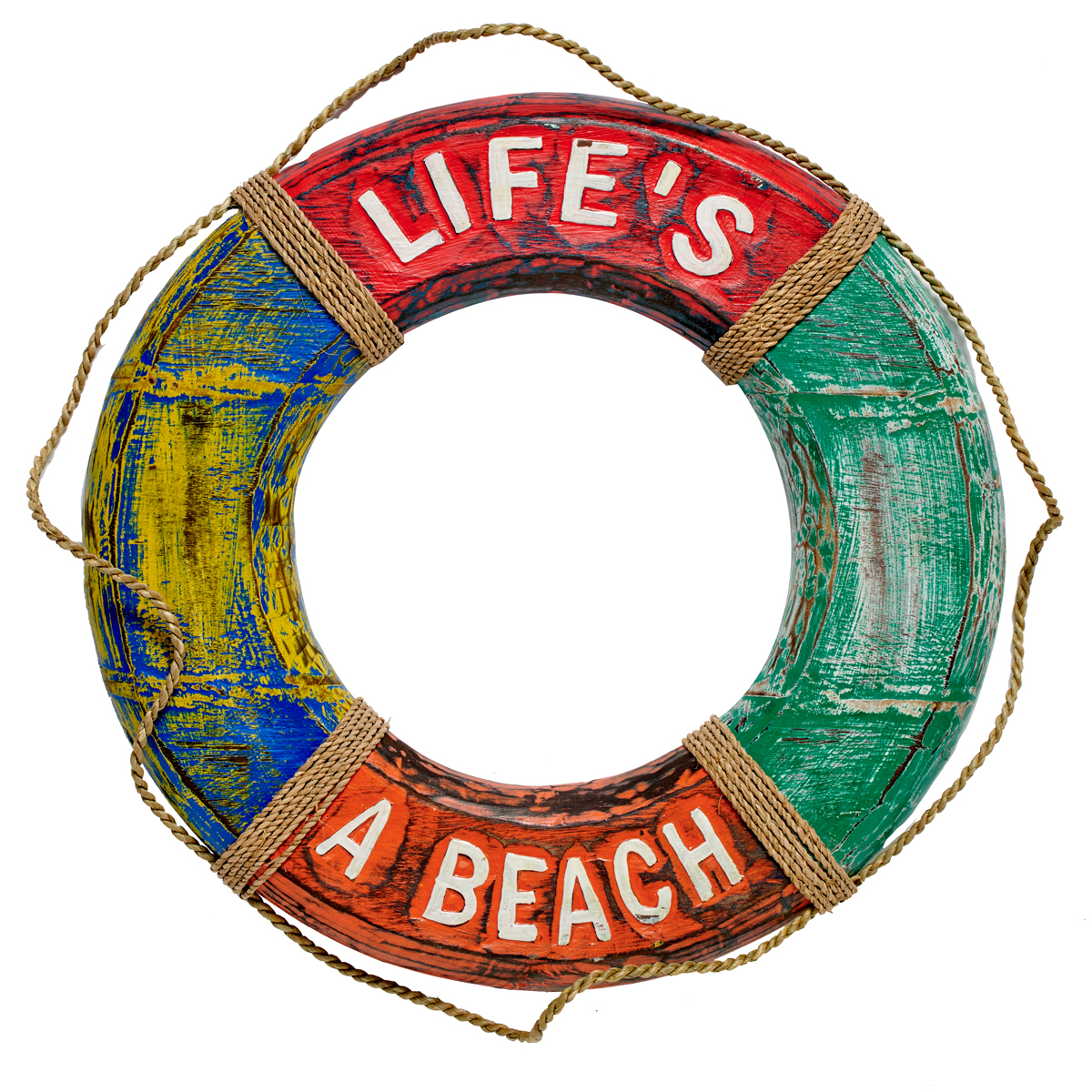 Painted carved wooden lifebelt. Dimensions; Dia. 50cm.