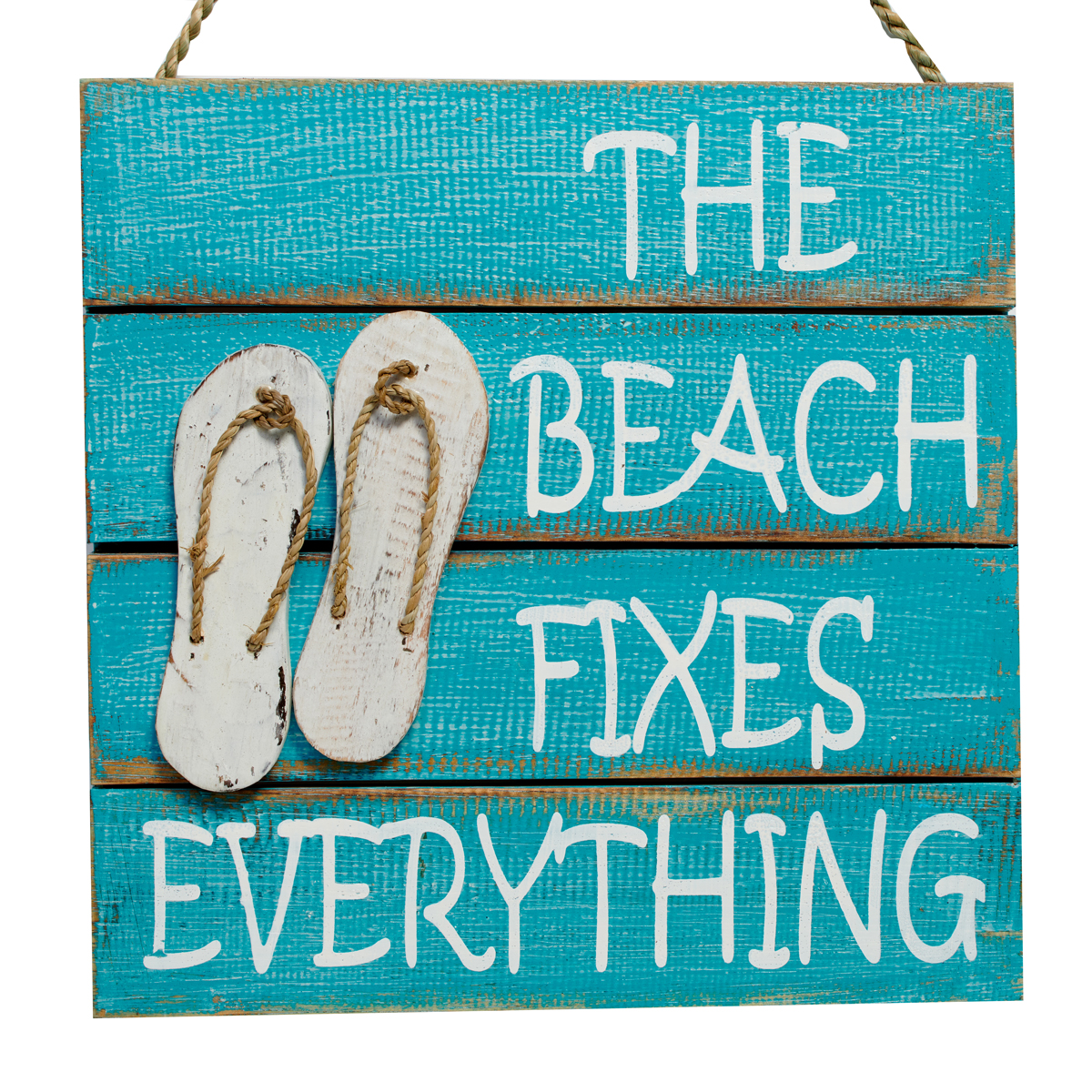 The beach fixes everything wooden sign. Dimensions; W30 x H30cm.