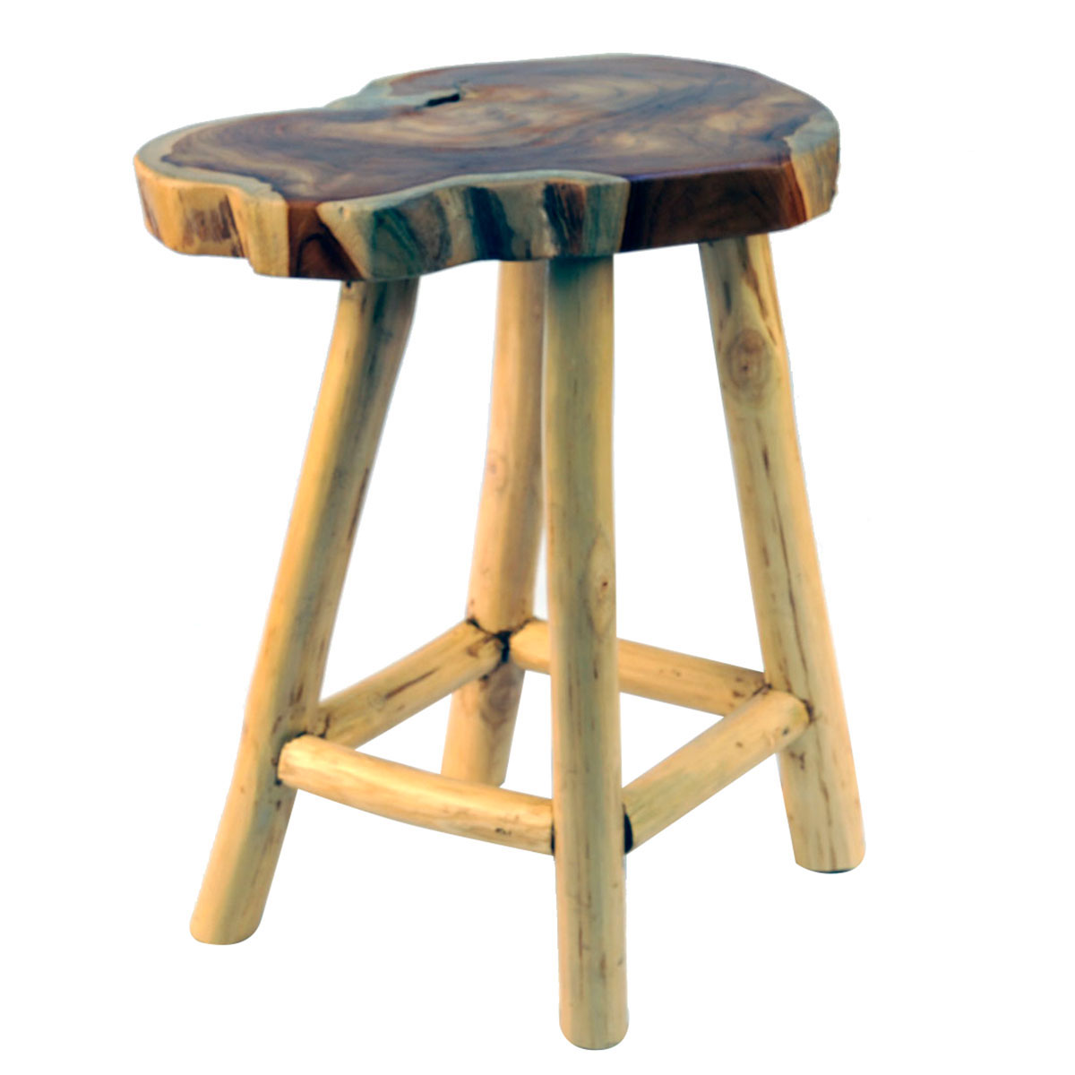 Teak stool with bamboo legs