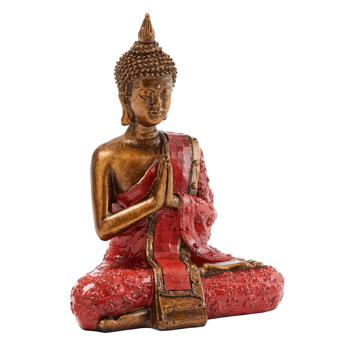 Painted resin sitting Thai Buddha. Dimensions; H20cm.