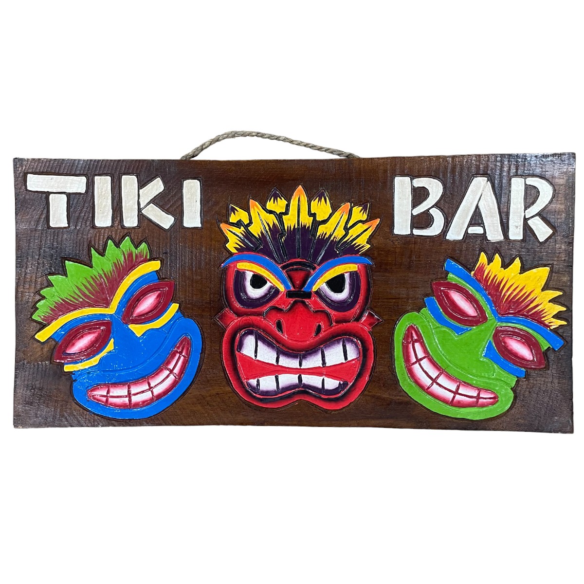 Hand carved and hand-painted wooden ‘Tiki bar’ sign.
