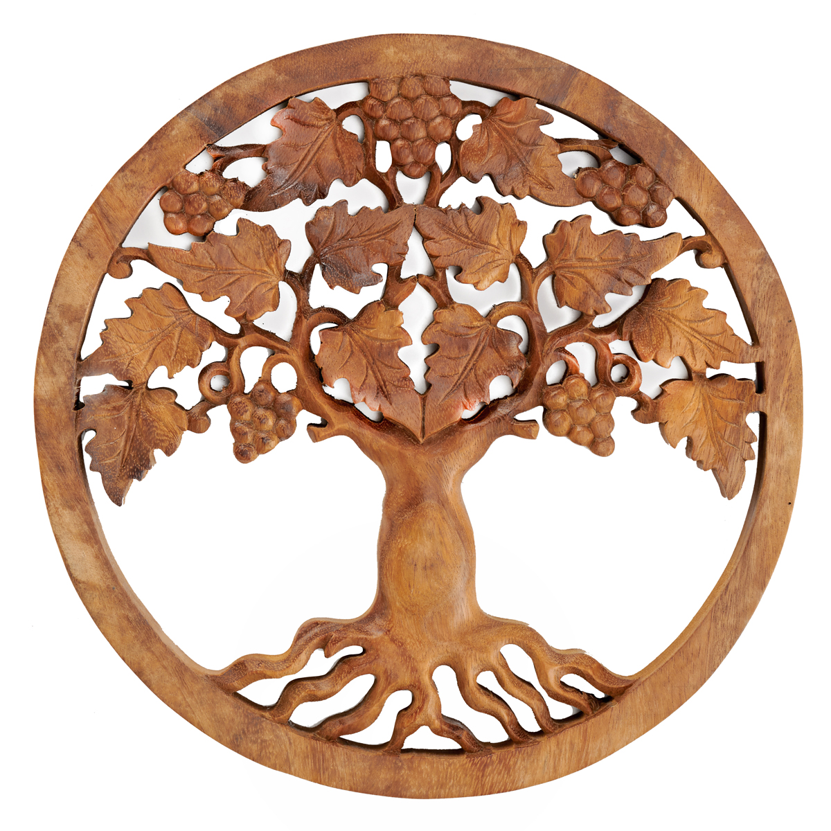 Hand-carved suar wood tree of life wall plaque.